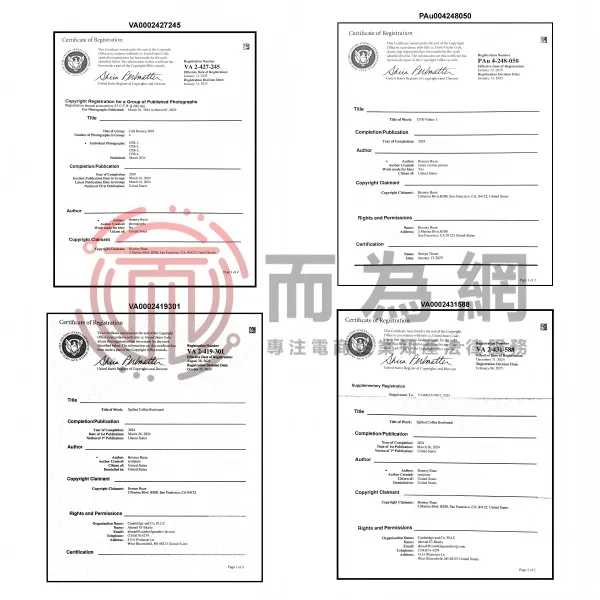 本案涉及的版权信息如下,未经授权以下版权图片及原告官网的其他产品图片都要谨慎使用,否则会有侵权风险!