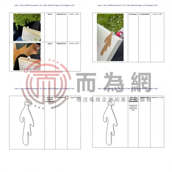 25-cv-6140、25-cv-8785 隐匿案件曝光!这款超火爆spilled coffee书签正在发案维权,速看避雷!