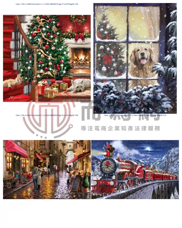 原告The Macneil Studio LTD在8月4日首发维权(案件号25-cv-9259)当时是两张圣诞风格版权画;8月20日新增三张全新版权图再发案(案件号25-cv-9940)。