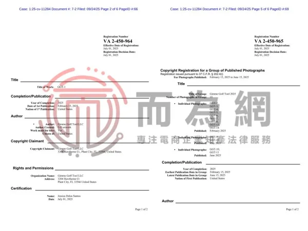 25-cv-11284 小众产品侵权危机!这款高尔夫配件版权维权中,速排查下架!