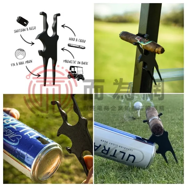 如今,这款精心设计的高尔夫工具已成为众多球友的随身伴侣。它既是开瓶神器,一按就能轻松开罐;又是个可靠的雪茄架,能稳稳卡在球车上或插在草地里。同时,它本身还是个标准的修草工具。