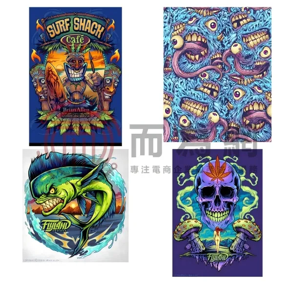 原告Brian Michael Allen是一位自由艺术家与创意总监,擅长以旗帜、空间等元素作为创作背景,创作各种具有爱国主义的插画。他以两种鲜明对比的创作风格著称:时而用明亮色彩描绘快乐主题,时而以暗黑笔触勾勒怪诞意象,作品始终带着幽默不羁的个性烙印。