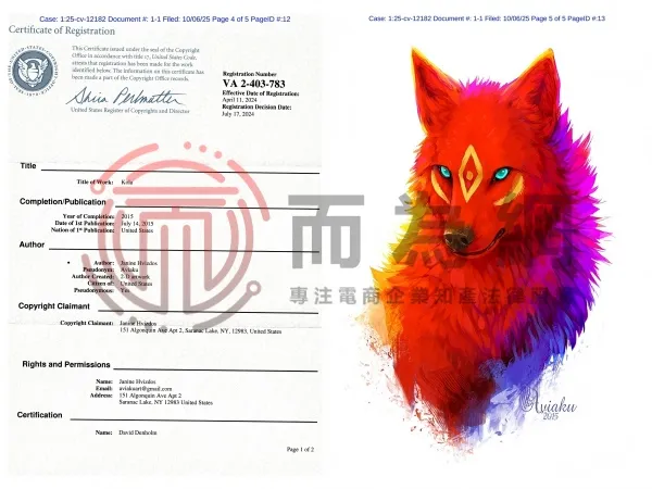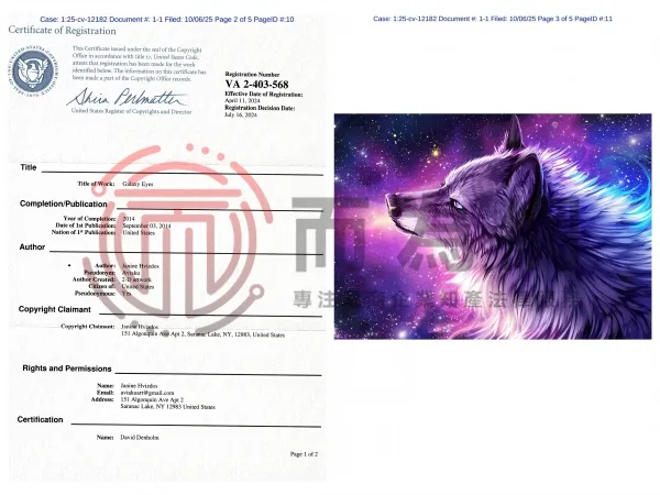 25-cv-12182 Keith代理全新两张狼元素版权发案维权!速排查下架!