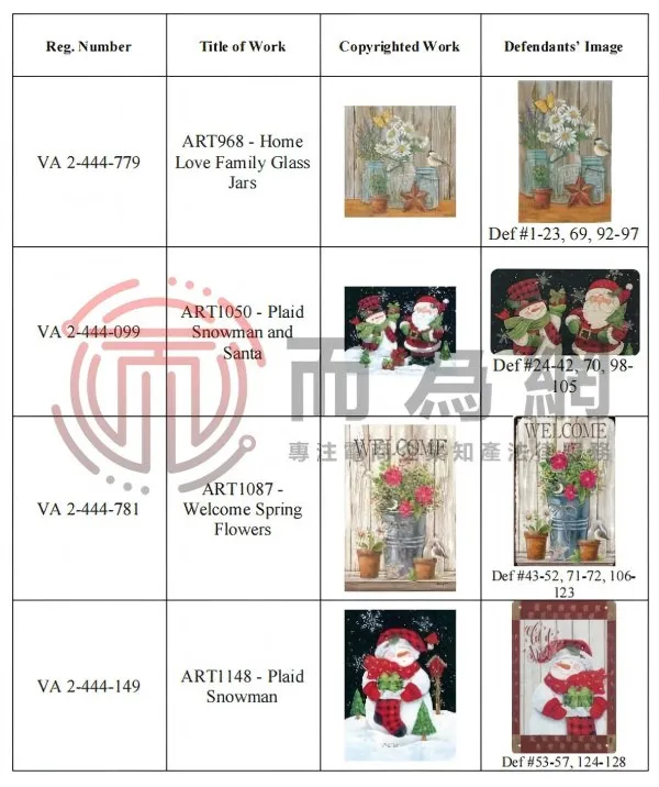 本案涉及的版权信息如下,共14张图片,未经授权以下图片及原告官网的其他作品都不能擅自使用,请卖家们仔细排查,避免侵权!