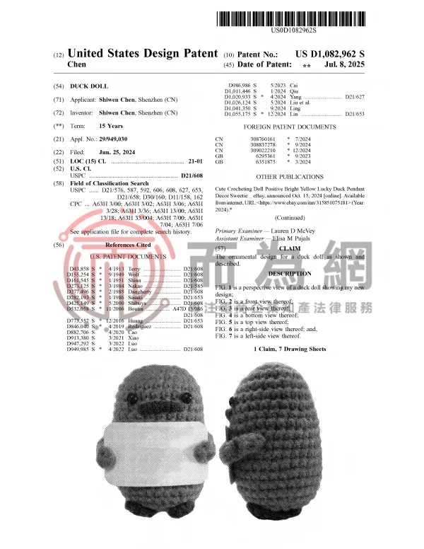 25-cv-1815、25-cv-1818 国人原告连发两案!可能涉及这两项专利,同款针织玩偶速排查下架!