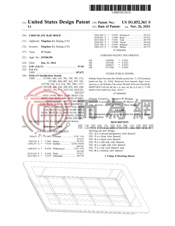 原告Xingshao Li是一位国人原告,主要负责生产和销售一款巧克力模具。这块模具采用食品级加厚硅胶,不含BPA,耐温-40°C至230°C,可从容应对烤箱、微波炉与冰箱的多样使用场景。