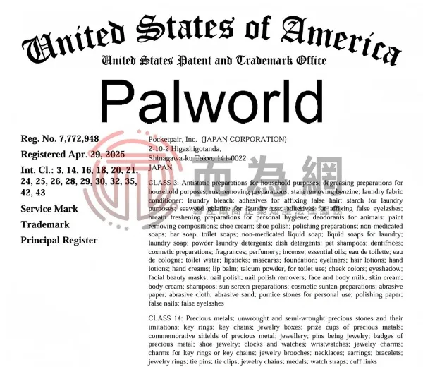 25-cv-6584 热门游戏Palworld 幻兽帕鲁商标发案!相关周边及文创产品速排查下架!