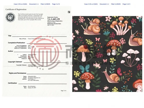 25-cv-1841 Ference律所代理一张蘑菇蜗牛矢量图发案,速排查下架!