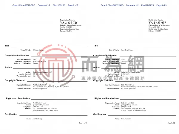 25-cv-6872 服饰卖家速看避雷!加拿大品牌Pink Palm Puff商标+版权发案维权中!