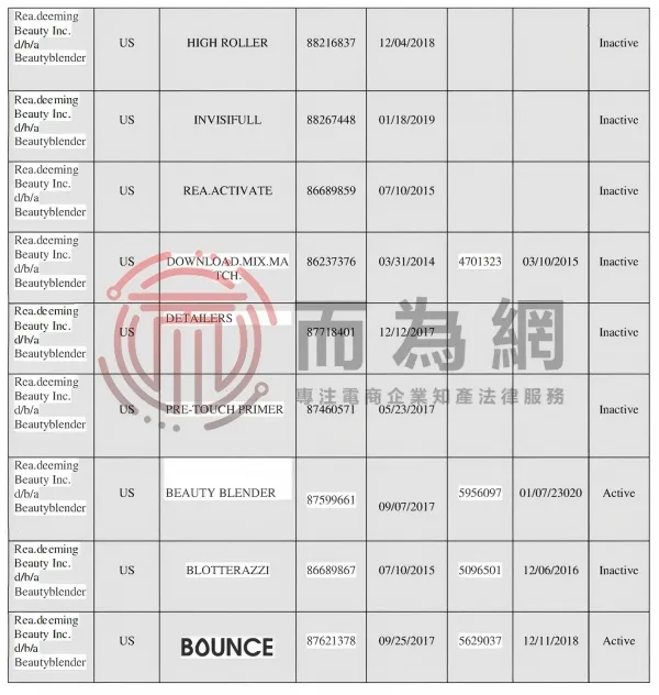 原告Rea.Deeming Beauty, Inc.是一家化妆品和彩妆产品的供应商和制造商,旗下产品品类众多,包括但不限于 Beauty Blender化妆海绵、Power Pocket Puff粉扑海绵、Blender Defender化妆海绵收纳盒等。