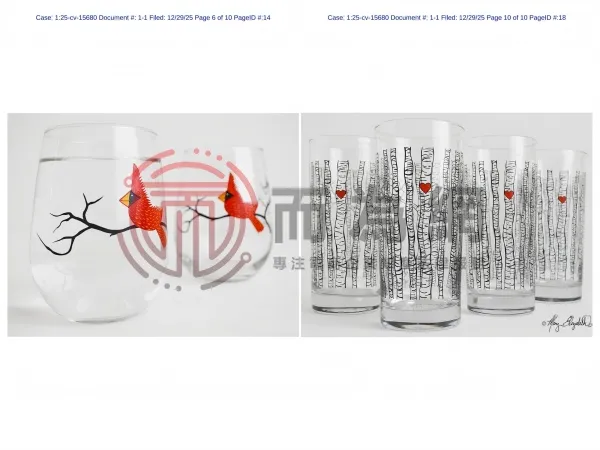 原告Mary Elizabeth Hining是一位来自美国的艺术家,3岁开始接触创作、始习油画与画布创作,功底扎实。在一次西西里考古之旅中,她偶遇古希腊彩陶残片,惊觉其精细纹样皆出自笔触而非釉彩,自此,陶瓷与玻璃成了她流动的画布,自然万象皆可在其间体现。