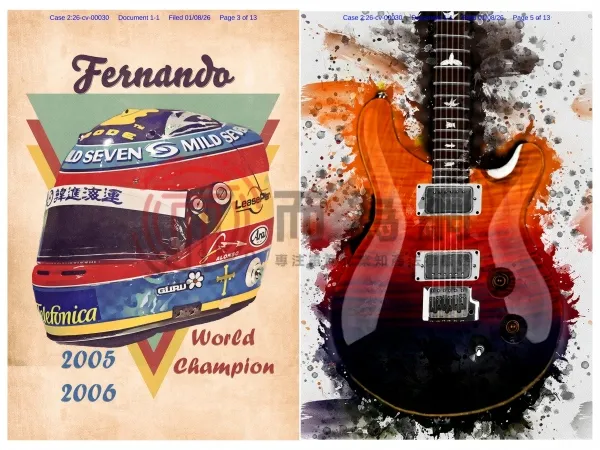 26-cv-00030 Ference律所代理6张复古插画发案!涉及吉他、头盔等元素!