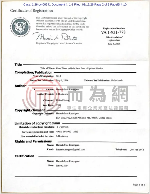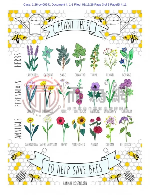26-cv-341 Hannah Mae Rosengren 1张花卉版权发案!70家店铺中招!
