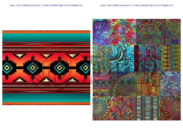 26-cv-595 Keitn代理7张全新版权发案!涉及七彩蘑菇、神秘花纹等元素!