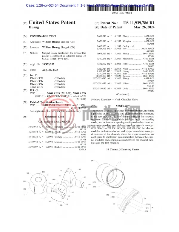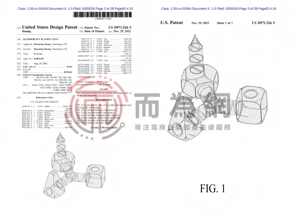 26-cv-2454 宠物用品卖家注意!三款宠物帐篷专利正在发案维权,速排查下架!