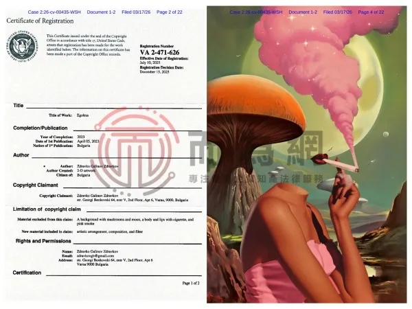 原告ZDRAVKO GALINOV ZDRAVKOV是一位来自保加利亚的原创2-D艺术家,其创作核心集中在插画与艺术设计。自幼研习绘画的他,在高中阶段便专注于绘画技艺的提升,此后又接受了长达五年的正规艺术教育,在此期间他深入钻研绘画艺术绘画、美术、静物画、图形设计以及其他艺术领域。