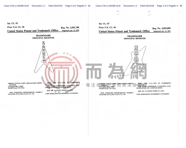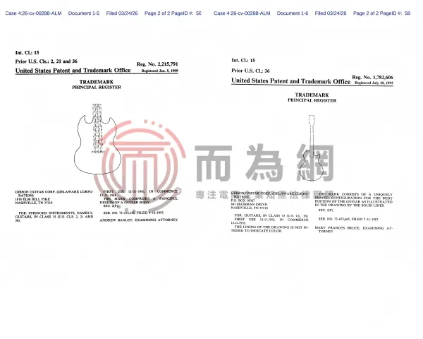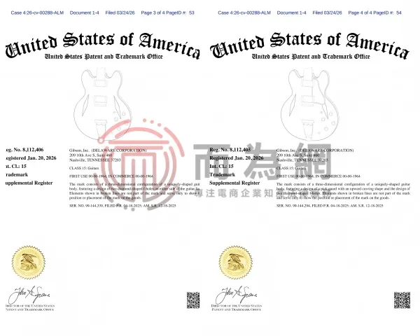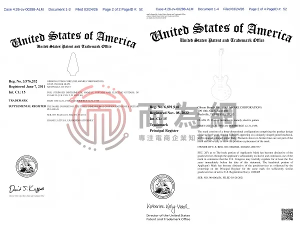 26-cv-288 速看避雷!知名乐器品牌 Gibson 琴头设计维权发案!