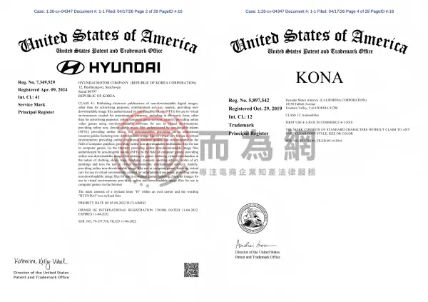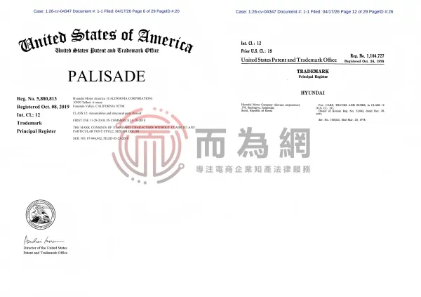 26-cv-4273、4347、4343、4409、4433 汽配卖家速看!GBC代理HYUNDAI 现代汽车连发五起商标维权!涉及汽车配件及全品类周边!