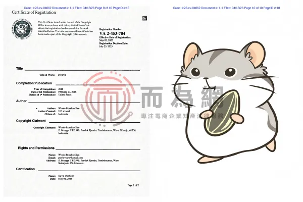 26-cv-4062 Winnie Rosaline Kan版权维权风暴再度袭来!凭借三张版权图提前锁定169名卖家! 案件信息