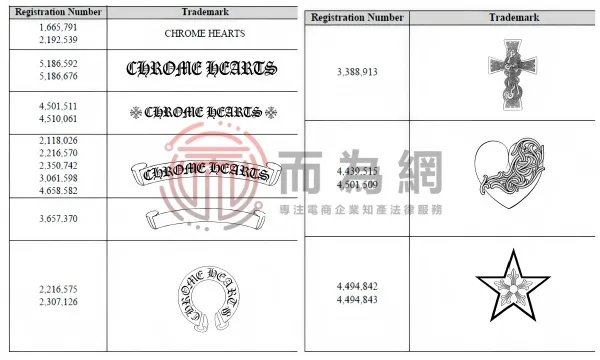 原告品牌:Chrome Hearts 克罗心